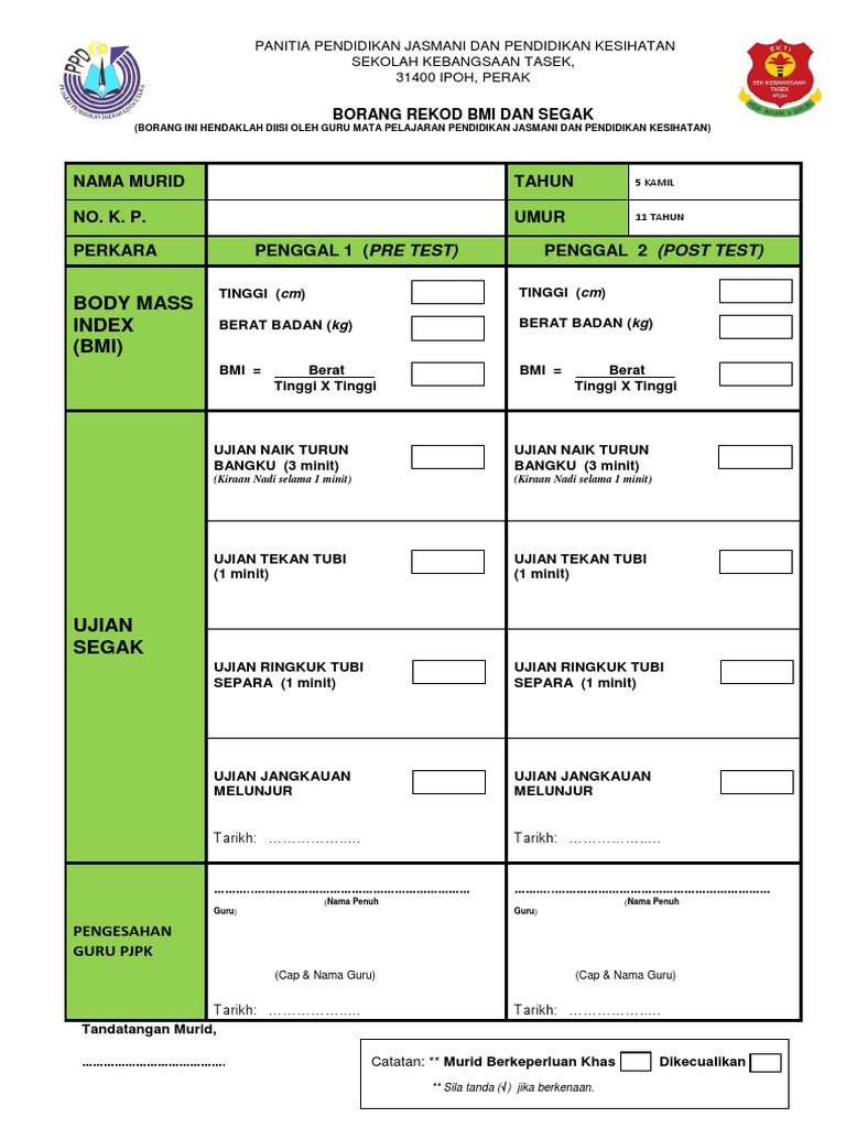 Makluman Berkaitan Pelaksanaan Ujian SEGAK 5 minutes ago. Ujian ini hendaklah ditadbir urus oleh Guru Pendidikan Jasmani dan dilaksanakan dalam bulan. TEMPLAT PELAPORAN PBD TAHUN 4 SJK.